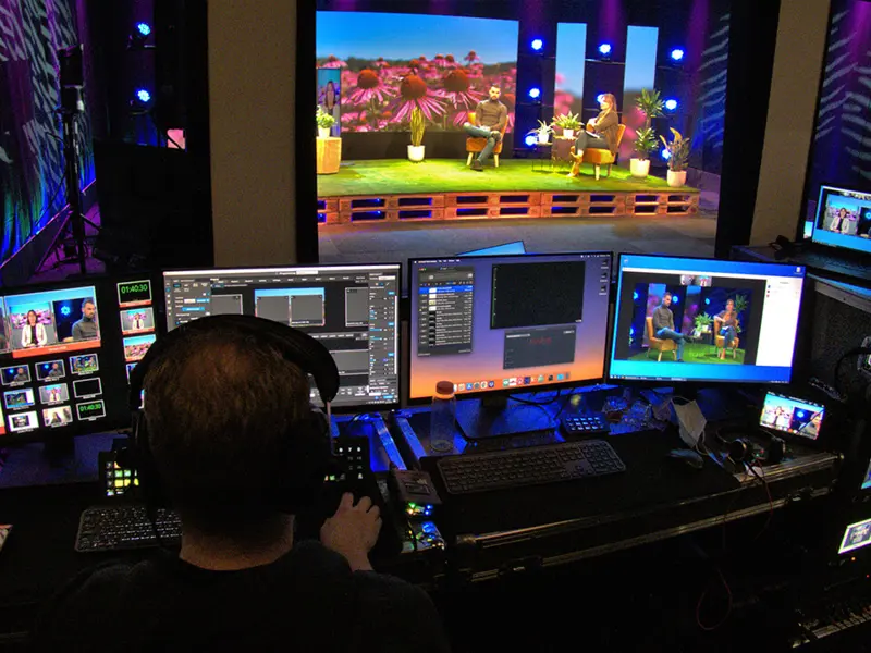 Met deze uitdaging kwamen we bij VidéPro terecht. Vanaf moment één hadden we de volle aandacht van Petra en Marco. Ze lieten in alles doorschemeren dat ook zij van deze livestream een succes wilden maken en dat gaf ons enorm veel vertrouwen. De persoonlijke begeleiding in het hele traject was een verademing. In een eerste online meeting met Marco en Petra – een laagdrempelige en aangename kennismaking – werd direct concreet wat wij moesten aanleveren (de inhoud en beelden met name) en voor de rest werd ons praktisch alles uit handen genomen. Petra maakte van onze input onder andere een handig draaiboek, verzorgde alle afstemming met techniek en creatie en wist precies de juiste dingen voor te stellen om alles nog nét even een niveautje hoger te tillen. Marco verzorgde als ‘creatieve technicus’ na één enkele briefing een prachtig decor met adembenemende belichting en wist ons steeds weer te ‘pakken’ met zijn verrassende ideeën voor camera shots en –hoeken. Lang verhaal kort: beide blinken ze uit in meedenken en ontzorgen. En in flexibiliteit. Want zelfs toen we plotseling te maken kregen met mensen die niet live aanwezig konden zijn, werd er in oplossingen gedacht en snel geschakeld: schermen regelen en mensen op afstand erbij. Niets is ze te gek, waarschijnlijk door hun enorme bulk aan ervaring. Echt, chapeau!